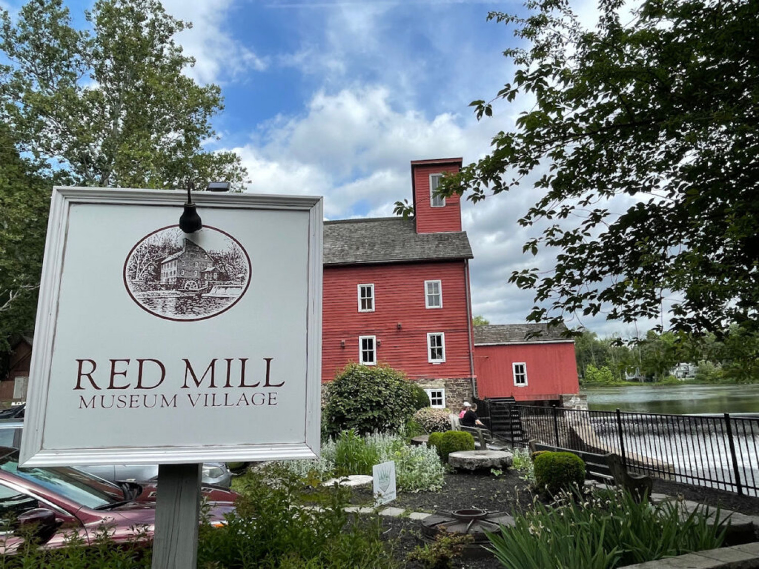 How to visit:The museum is open Thursday through Sunday. Free admission on the first Thursday of each month. The café offers views of the sculpture garden, another architectural space worth exploring. Red Mill Sign & Building: A sign for "Red Mill Museum Village" stands in the foreground, with the iconic red mill building visible behind it next to a river, under a blue sky with white clouds The 1810 gristmill represents vernacular industrial architecture adapted to waterpower. The red wooden structure sits alongside the South Branch of the Raritan River, its position determined by water flow rather than aesthetic concerns.